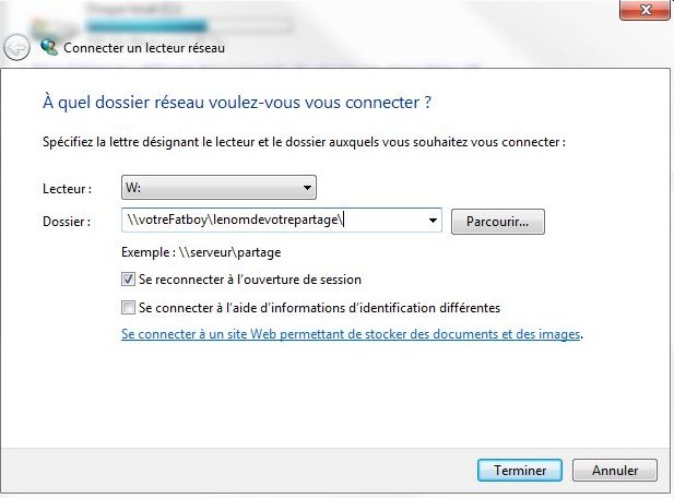 N’hésitez pas à « monter » un morceau du disque dur de votre FatBoy sur votre Windows.